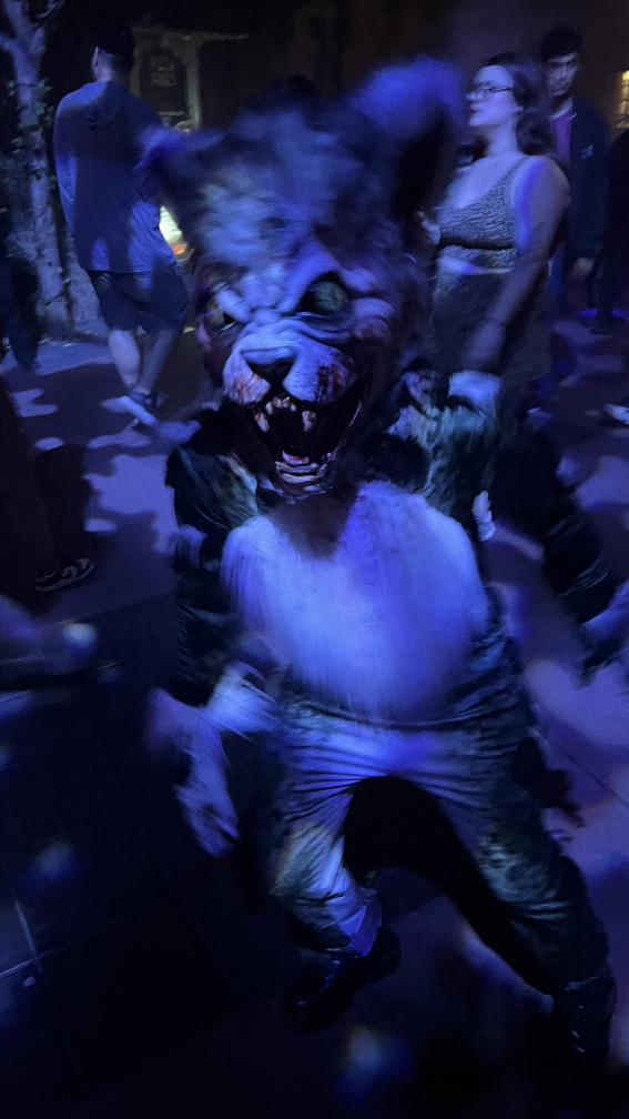 After having some disappointing food, we walked over to El Artista: A Spanish Haunting. The wait I want to say was around 45 minutes, so we jumped in line to wait. This line probably felt worse than it was because it had already been a long night, but the time did end up going up. I will say it was probably my favorite house, though! There were people on stilts, there were gargoyles flying, there was so much going on I loved it so much! It was dark, there were a good amount of jump scares. I thought this was an absolutely beautiful house!